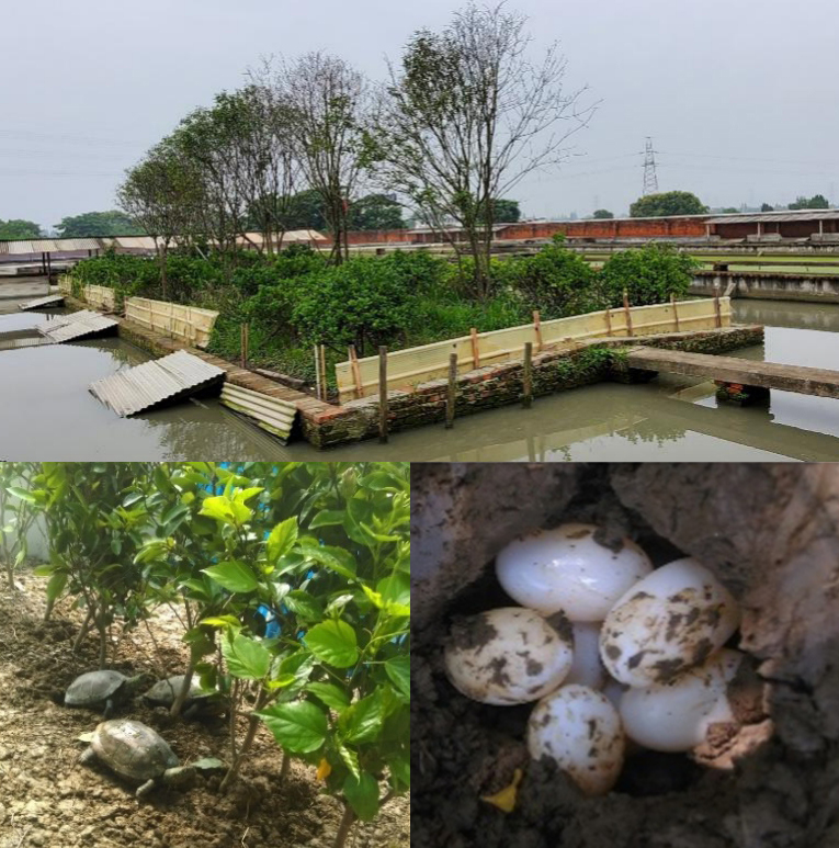 该研究基地位于浙江省嘉兴市,为半自然龟鳖产卵场和孵化场,主要以中华草龟为研究对象,结合自然孵化实验和分子技术手段,旨在探究龟鳖类胚胎行为热调节的生态意义和龟鳖类温度决定性别的分子机制。